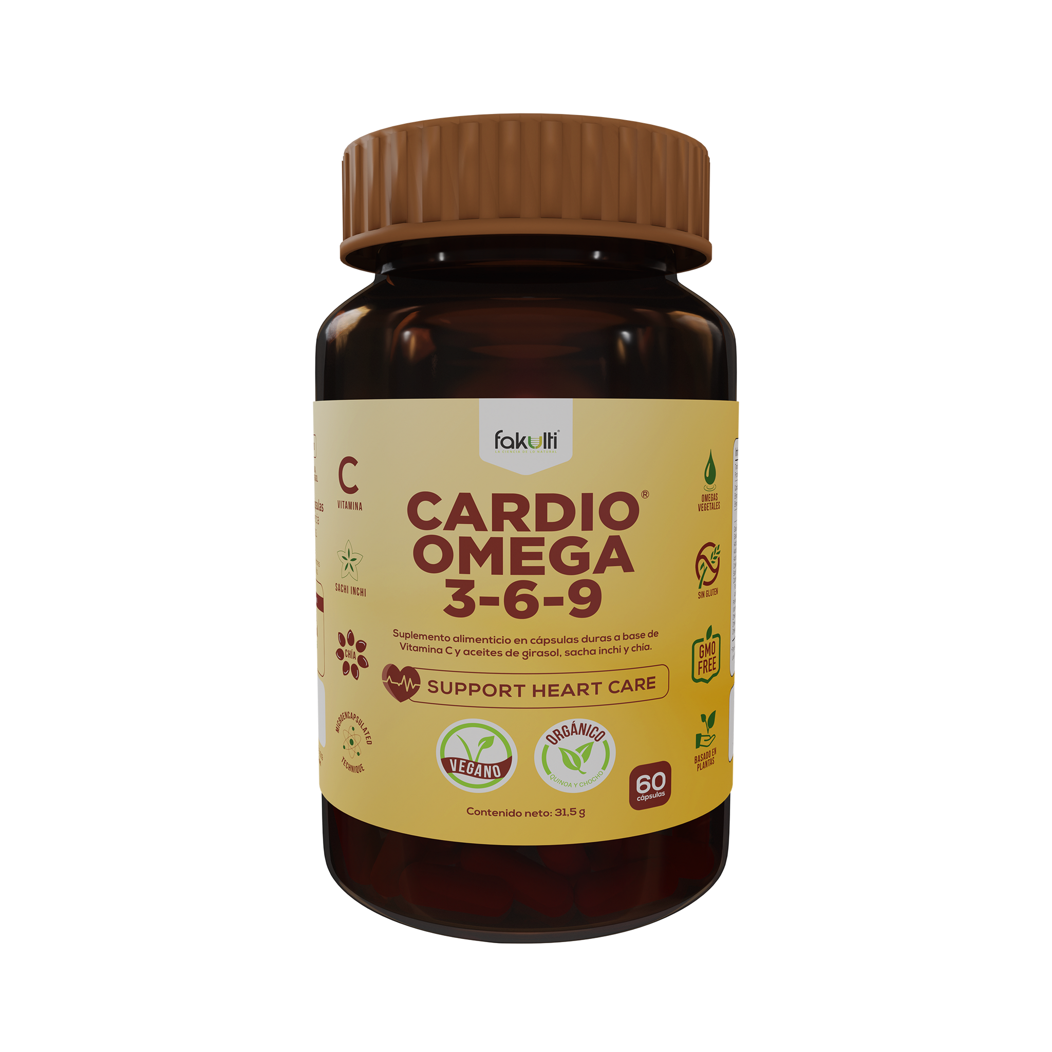 Descubre el suplemento biotecnológico Cardio Omega® 3-6-9, una mezcla balanceada microencapsulada en cápsulas de gelatina dura. Esta fórmula única incorpora aceites de chía, girasol y sacha inchi, proporcionando un aporte significativo de ácidos grasos saludables Omega 3, 6 y 9.